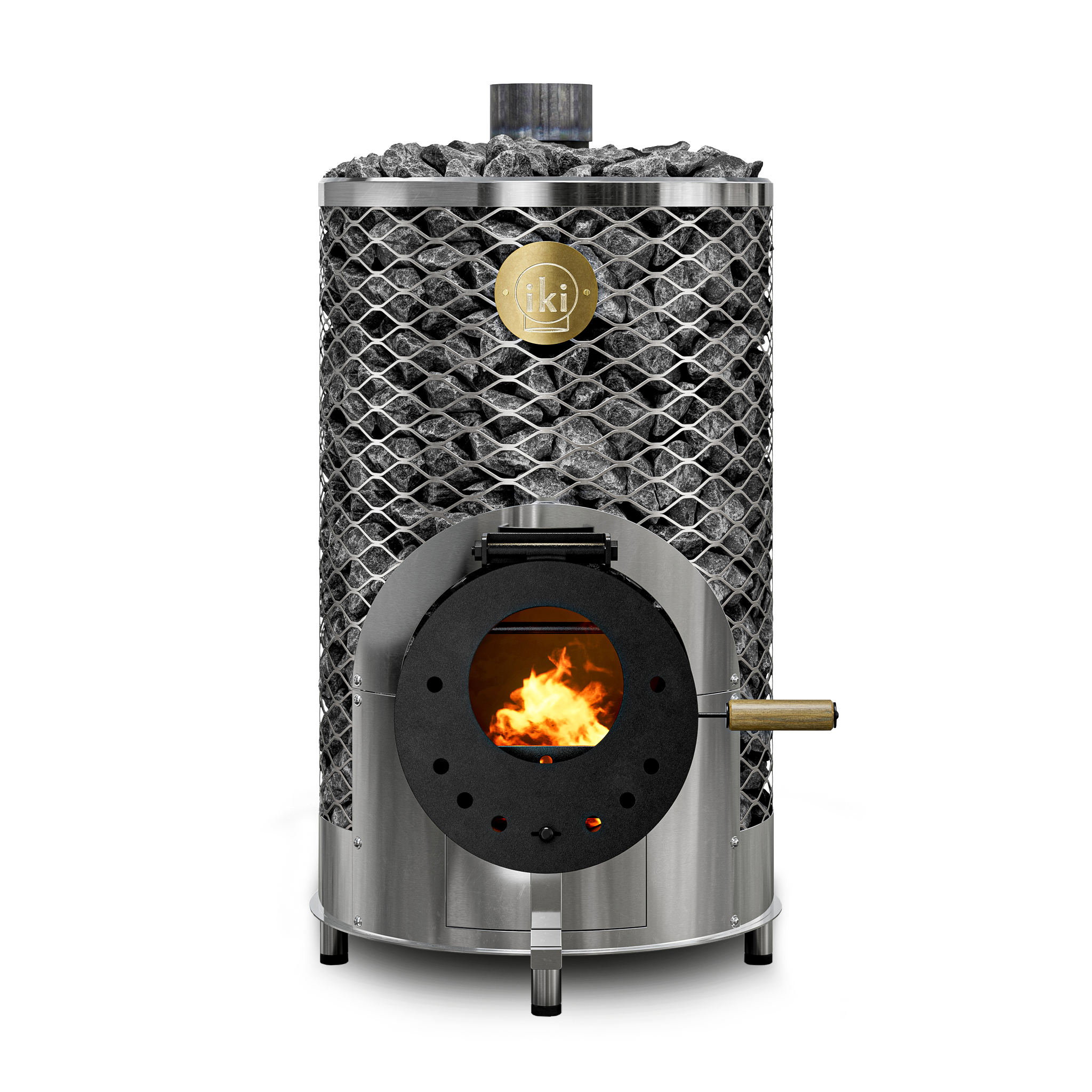 IKI sauna stoves are hand built in Finland from premium stainless steel, meeting strict durability and performance standards. The refined aesthetics and robust construction of the IKI Löyly Junior make it a reliable, long-lasting choice for sauna enthusiasts seeking traditional wood-burning heating with authentic Finnish craftsmanship.