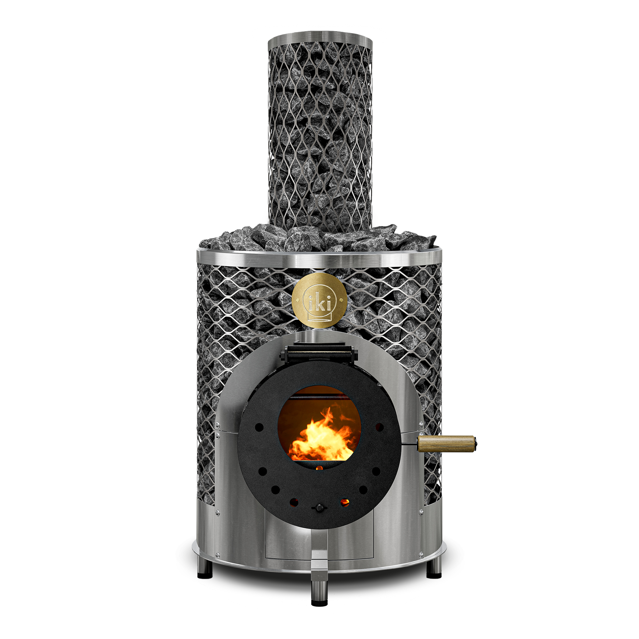 In the Plus version of the Mini IKI heater the fire pipe of the heater is connected to the furnace and surrounded by stones encased in a stainless-steel mesh. Pouring water on the stones surrounding the pipe gives off warm luxurious steam. If you like it hot, however, pouring water on the stones on top of the heater gives off much hotter high-impact heat.